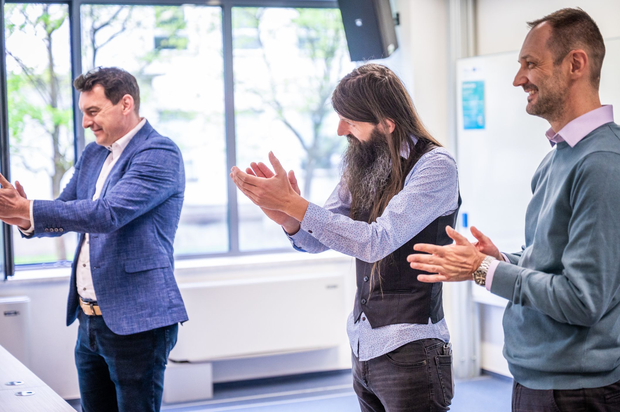 Závěr dvoudenního programu patřil poděkování všem, kteří se na organizaci podíleli – jak na straně fakulty, tak partnerů z Kraje Vysočina. Slavnostní atmosféru podtrhlo i ocenění Petera Pažitného, vedoucího českého výzkumného týmu DIGI4Care, který byl v rámci akce oceněn jako Nejlepší učitel Fakulty managementu VŠE za akademický rok 2024/2025.